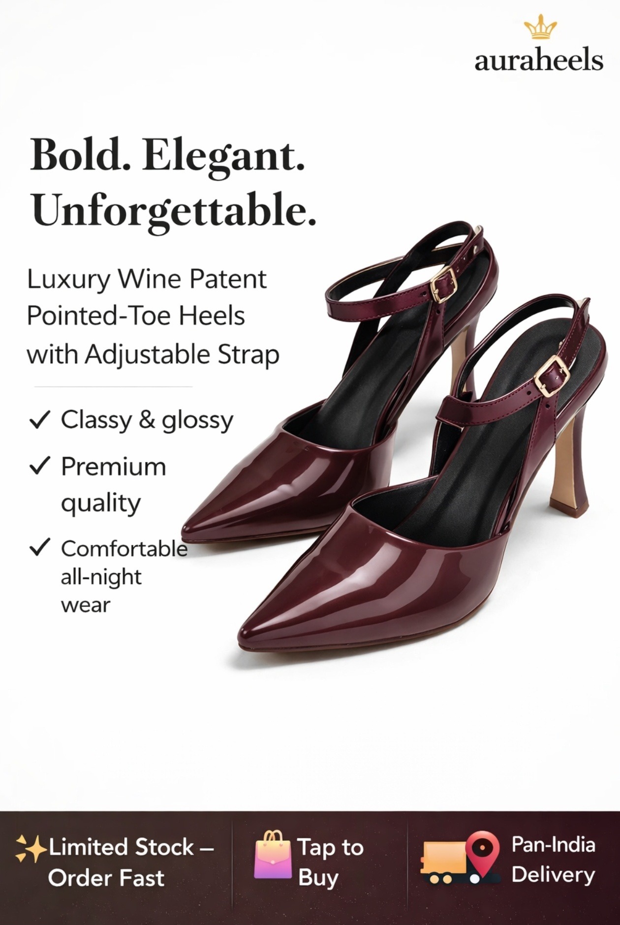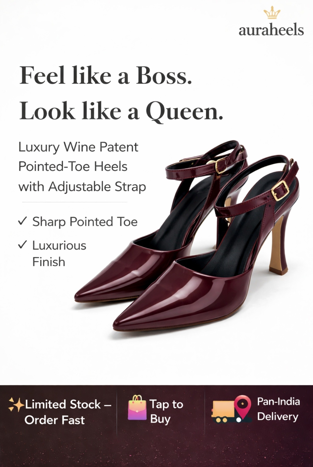 Step into confidence with our elegant wine-colored pointed heels.